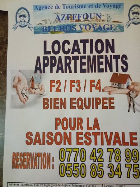 Description : Location d appartement à azeffoun pour juin juillet août 2018 6 000 da azeffoun centre 0550853475/0770427899