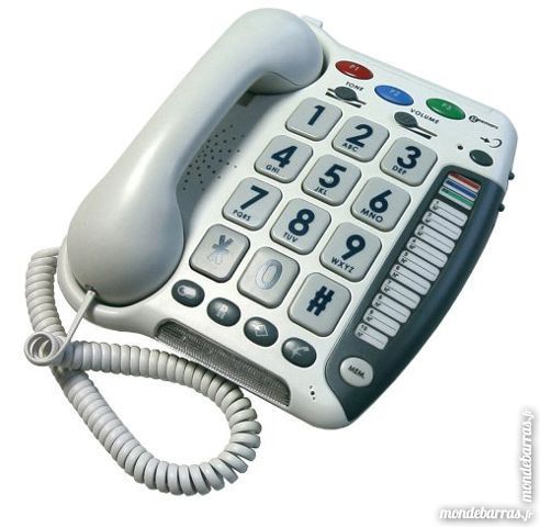Description :Combiné téléphonique filaire Geemarc Clearsound CL50 Grosses touches Volume de réception +20 dB 3 Mémoires urgence