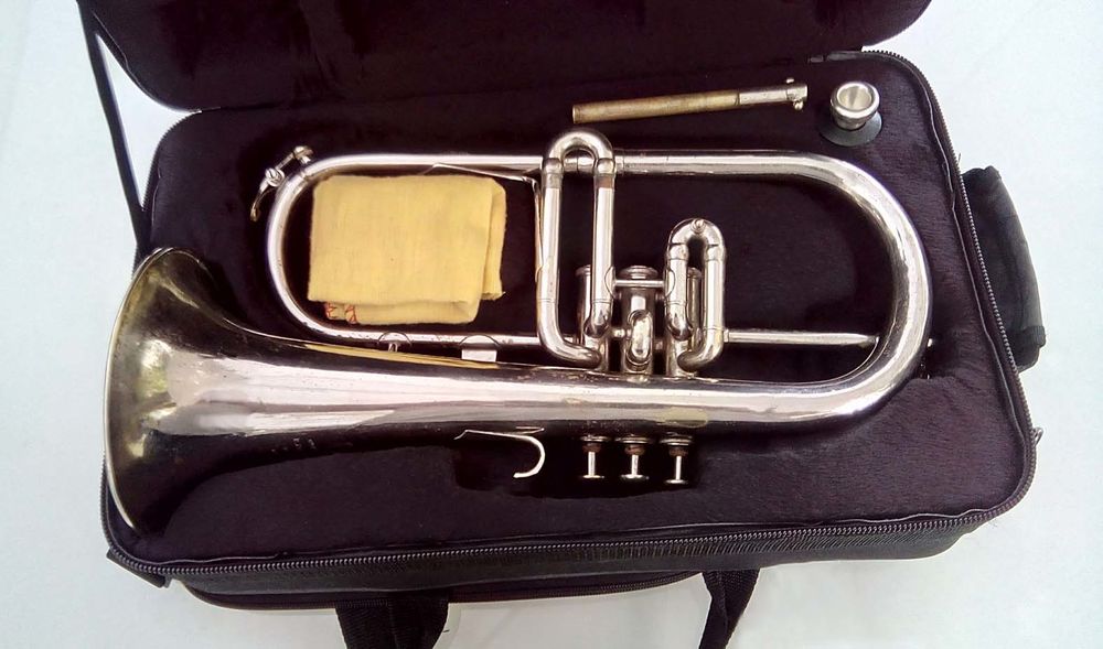 Description :Vends bugle argenté de fabrication française signé henri pihan. en bon état de jeu, pas de bosse, les pistons et potences coulissent librement. un beau son, rond et chaud. vendu avec une embouchure a. courtois et mallette de transport.