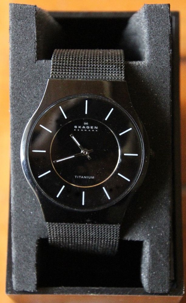Description :Vds montre skagen denmark titanium diametre 32m/m - extra plate 6m/m bracelet acier mailles milanaises (légère usure) boîte d'origine et notice