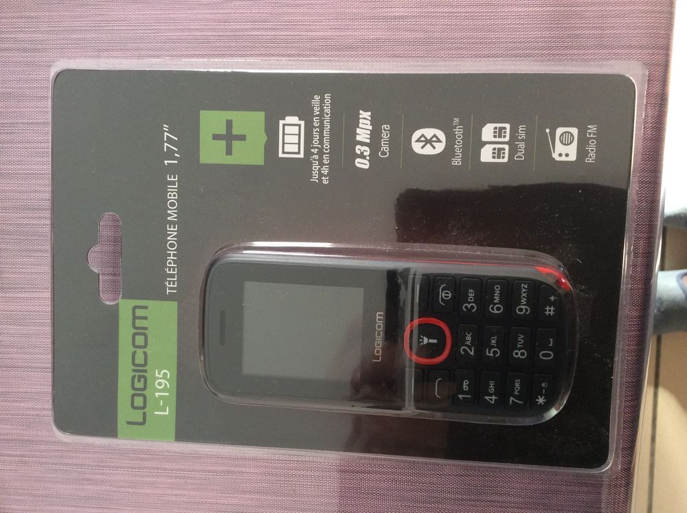 Description :Vends téléphone mobile logicom l- 195 noir , neuf, encore dans son emballage . Écran : 1, 77 " , 4,5 cm . photo : 0,3 mégapixels. connectivité : compatible bluetooth .pour utiliser kit piéton . double sim.( idéal pour utilisation perso et professionnelle. audio: radio fm stéréo . prise audio- jack 3,5 mm réseau 2g mémoire interne: 32 mo rom + 32 mo ram .