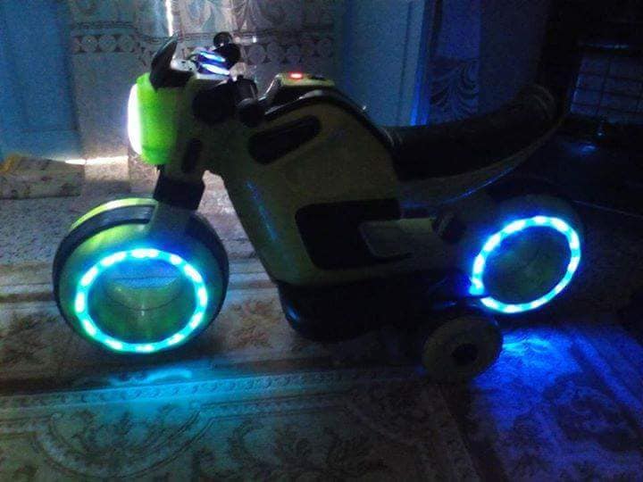 Description :Moto électrique pour enfants âgés de 3 à 4 ans double moteur et une batterie de 6v, marche avant et arrière avec un accélérateur, jeux de lumières sur les roux fiha probleme que matkherejch son tsema la music khasra 0658135192