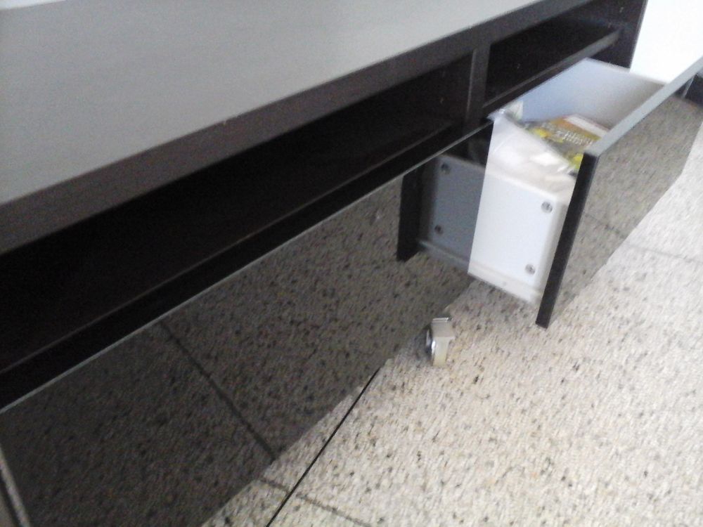 Description :MEUBLE TELE NOIR SUR ROULETTES AVEC PETITE TABLETTE ET DEUX TIROIRS. LES DEUX TIROIRS SONT EN BOIS LAQUES LE RESTE EST BRUT DIMENSION DU MEUBLE 1,20 M X 0,40 M HAUTEUR DE LA TABLETTE ENTRE SUPPORT ET TIROIR : 9 cm DIMENSION DE CHAQUE TIROIR : 0.50M DE LARGEUR SUR 15 CM DE HAUTEUR